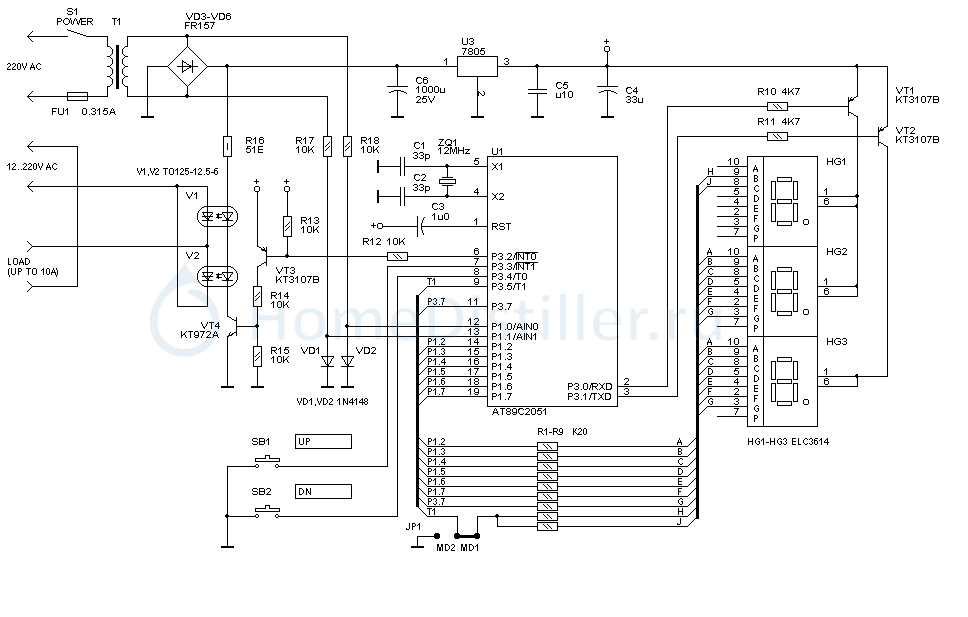 опторазвязка с триаком совсем не лишняя, в остальном там деталей не больше, просто семисегментный индикатор не весь показан