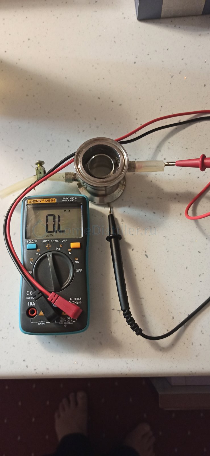 Сам прибор не мой-делал мастер, а вот датчики мои: IMG_20251015_192613. Измерение проводимости дистиллята для контроля окончания голов. Приборы и электр(он)ика.IMG_20251015_193223. Измерение проводимости дистиллята для контроля окончания голов. Приборы и электр(он)ика.IMG_20250904_232247. Измерение проводимости дистиллята для контроля окончания голов. Приборы и электр(он)ика. Сопротивление датчиков на последнем фото:один-0L (т.е. бесконечность-более 20Мом), второй-примерно 16Мом, т.к. мерил не вынимая из колонны-рект делал вчера, видимо остался продукт. А вот скорость отбора, видимо мала: тело-350-500мл, головы-35-50мл/ч, нагрев-600Вт общая (в общем-по Сержу). Исходник-СС навалки 38% сахарной браги. Попробую 2-й рект такой-же навалки. Собрал прибор от мастера Volume, добавили второй канал, еще не включал, буду пробовать. Это для второго комплекта автоматики (гараж).