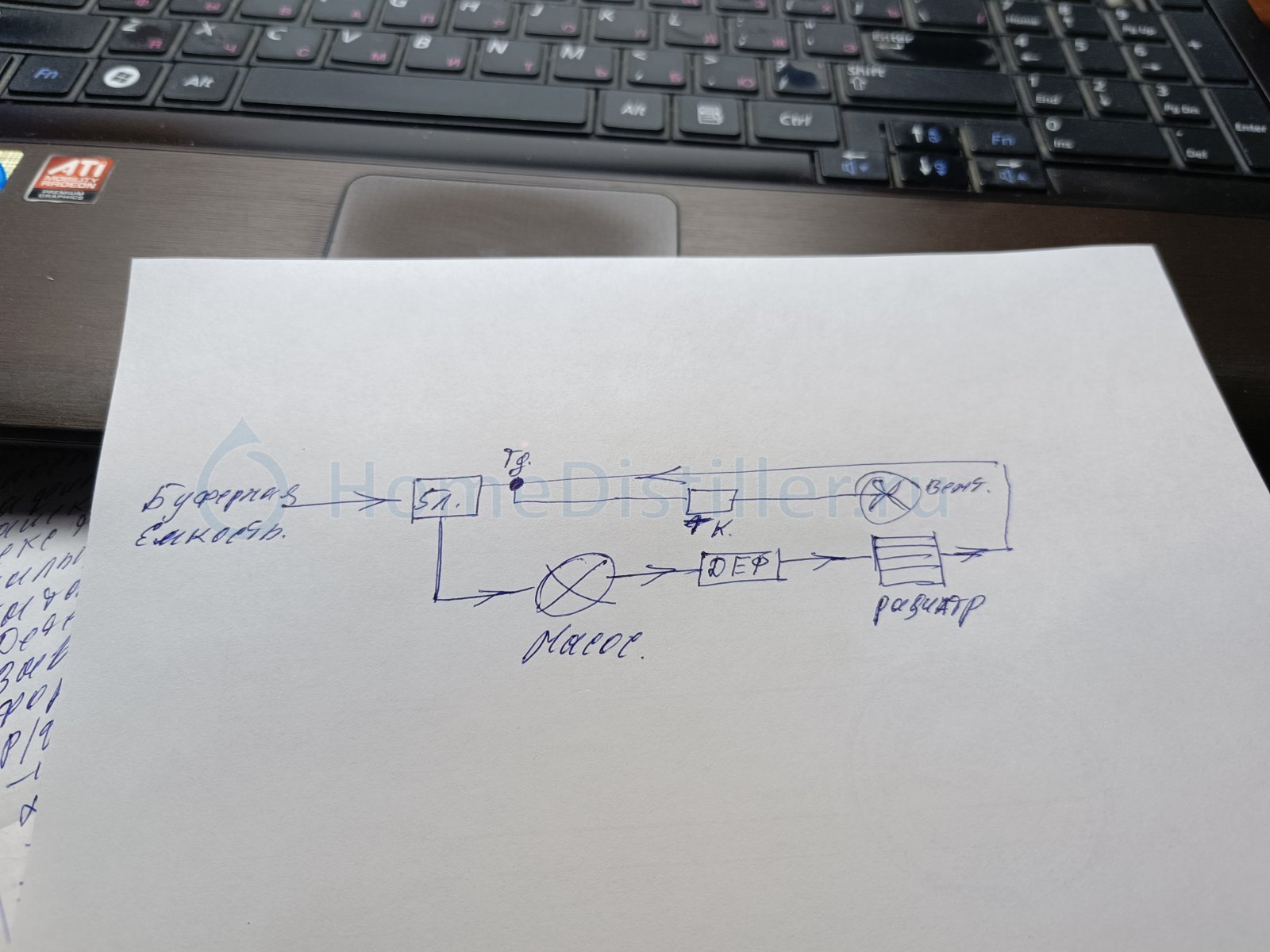 Что такое схема знаю,что такое "скетч" понятия не имею. У меня так,правда потребителей несколько.IMG_20260304_144658_885. Автономная система охлаждения (водяная). Автоматика.