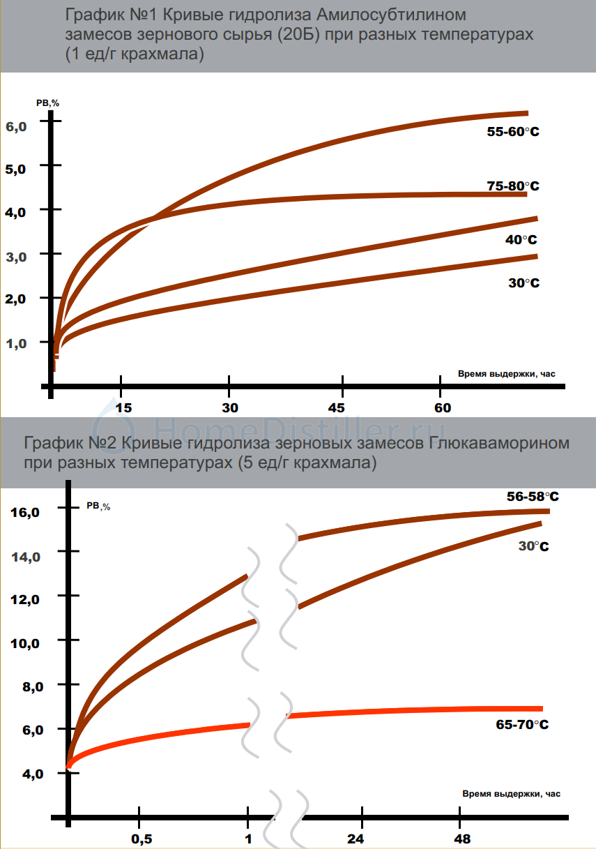 Анастасий, вот и оттуда оттуда график подумать как ферменты не варятся при температуре изображение_2026-04-21_164200738. Бурбон - американский виски, самогон из кукурузы. Дистилляты. Рецепты напитков. через пол часа при 75°С альфа говорит "нешмагла" и выходит из чата, глюкоамилаза при 65°С. За пол часа альфа при 55-60 осахаривает больше чем при 75-80, кто увидел тот увидел.
