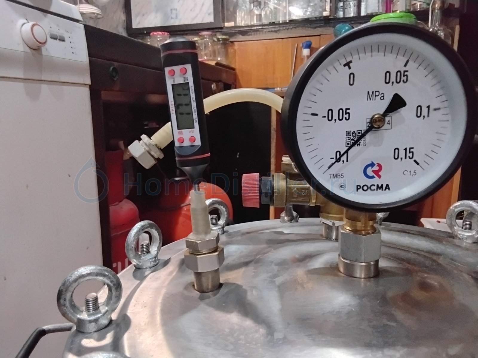 Приветствую. Сейчас впервые налил в автоклав воды и пробую функционал. Есть автоматика в ней с выносным термодатчиком. Вывел тенами автоматики на температуру 120 гр. На манометре на крышке автоклава давление 4 рисочки на черной шкале, то есть 0,8 бар. Такое соответствие (0,8 бар=120гр) может быть? Я понимаю, что может подсвистывать, но не настолько ведь? Думал датчик температуры или автоматика свистит. Выдернул датчик и быстренько вставил в дырку аналоговый термометр. Показывает тоже 120гр. Рабочее давление, как пишут в таблицах должно быть от 1 бар. У меня почемуто не дотягивает? Менять манометр давления? Выкручивается ли он? Или считать показания 0,8 cчитать 1 бар? Автоклав вней 23л старого образца.