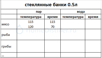 Если кто вдруг себе делал подобную памятку по банкам/реторт-пакетам в разных режимах для разных продуктов, то поделитесь, пожалуйста.