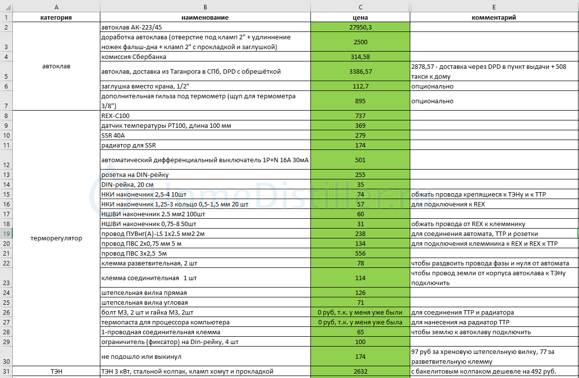 - По деньгам вышло 42к. Из них 35к это автоклав с доставкой, 4.2к - автоматика и провода, 2.6к - ТЭН. В расчёт не вошли подарки знакомым за аренду инструмента)